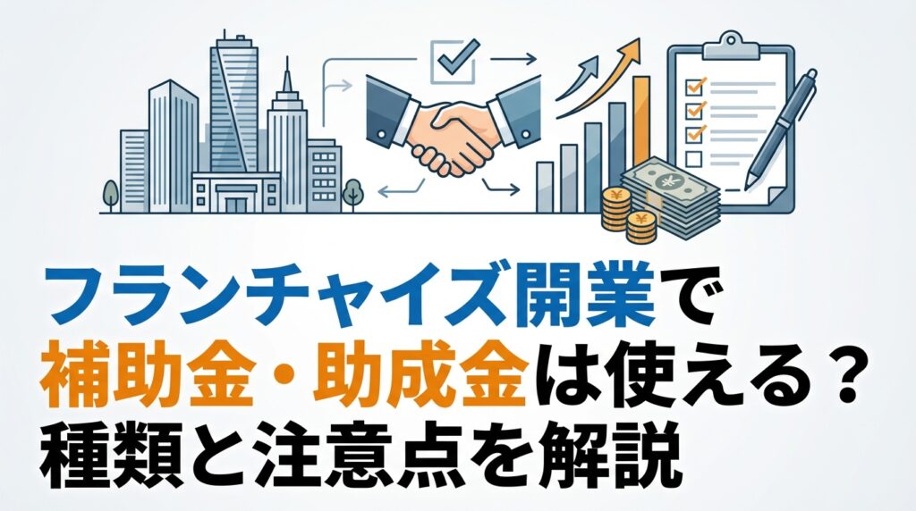 フランチャイズ開業で補助金・助成金が使えるか知りたい方へ。使える制度の種類から申請の注意点まで、5ブランド加盟経験のあるFC経営者が実体験をもとにわかりやすく解説します。 -