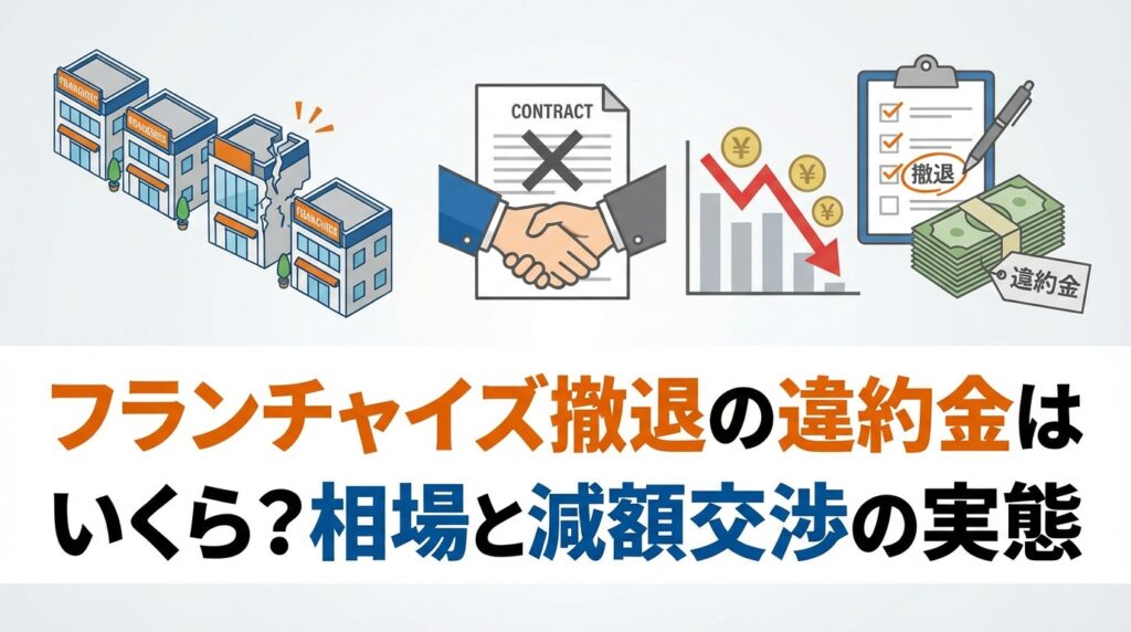 フランチャイズ撤退時の違約金はいくらかかるのか。相場・計算方法・減額交渉の実態まで、5ブランドに加盟したFC経営者が契約書の落とし穴も含めてリアルに解説します。 -
