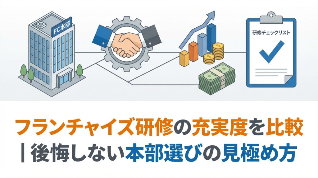 フランチャイズの研修充実度を比較して本部を選びたい方へ。5ブランド加盟経験のあるFC経営者が、研修内容の見極め方・失敗しない本部選びのポイントをリアルな体験談とともに解説します。 -