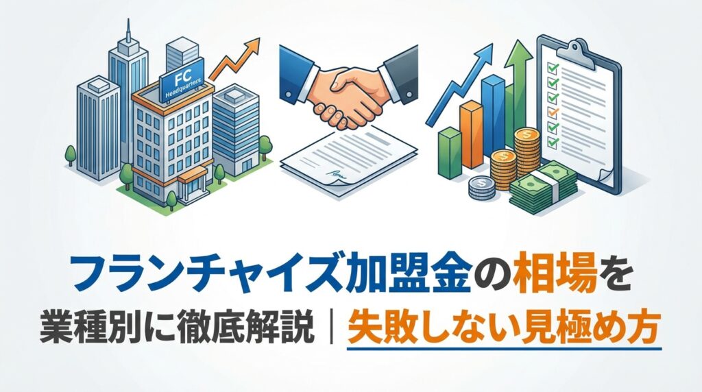 フランチャイズ加盟金の相場を業種別に比較。コンビニ・飲食・整体・学習塾など主要ジャンルの費用感と、加盟金だけで判断してはいけない理由をFC経営者が実体験をもとに解説します。 -
