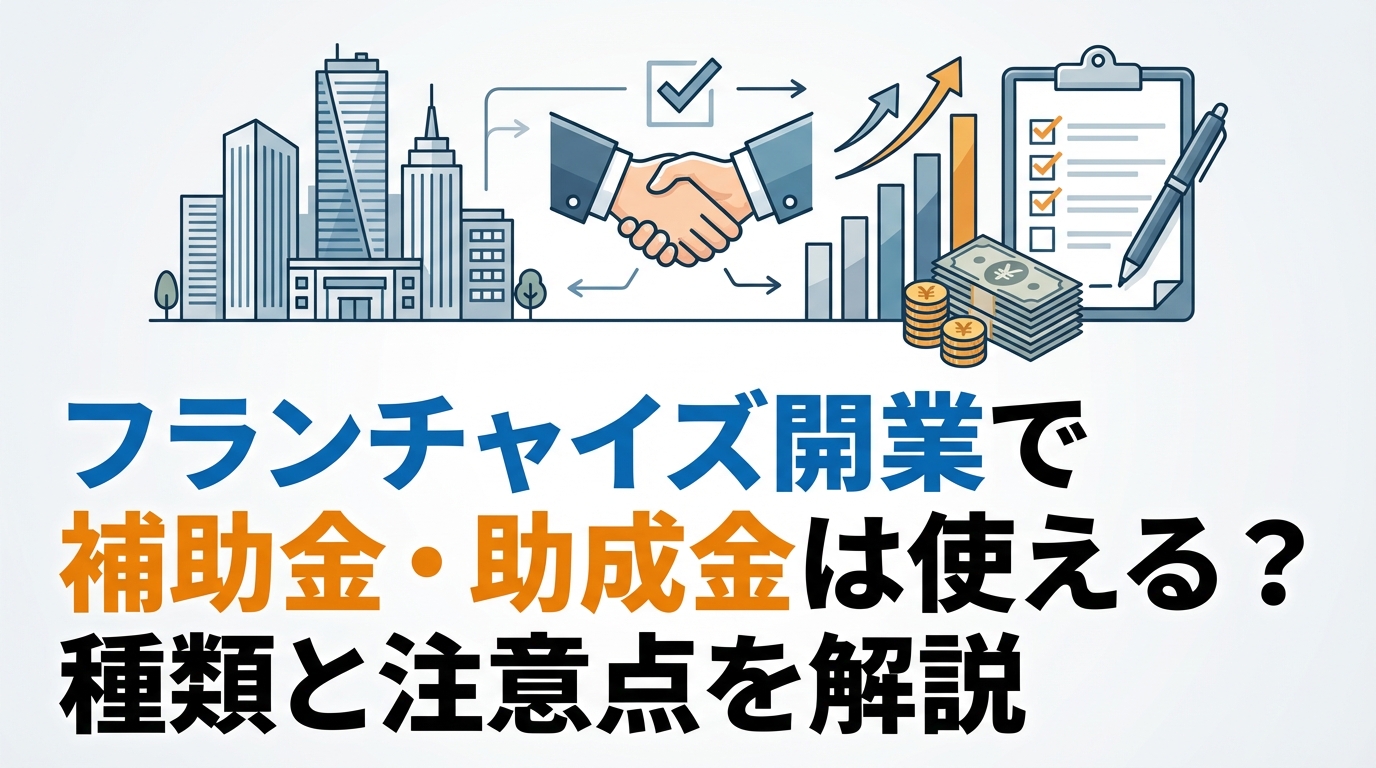フランチャイズ開業で補助金・助成金は使えます。小規模事業者持続化補助金・キャリアアップ助成金・自治体の創業補助金など、選択肢は複数ある。