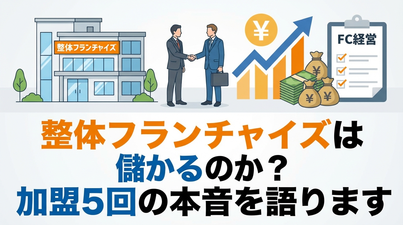 「整体フランチャイズって儲かるの?」——これ、加盟前に誰もが気になる疑問ですよね。ネットで調べると「月商300万円も可能!」みたいな情報と「騙された」という体験談が混在していて、何を信じればいいか分からなくなる。私自身、整体FCをはじめ5ブランドに加盟し、1店舗目は月商300万円を達成しながら、最終的に借金3,000万円以上を抱えて撤退した経験があります。成功も失敗も、両方リアルに見てきた立場から、包み隠さず書きます。この記事を読めば、整体フランチャイズの収益の現実と、失敗しないために見るべきポイントが具体的に分かるはずです。
